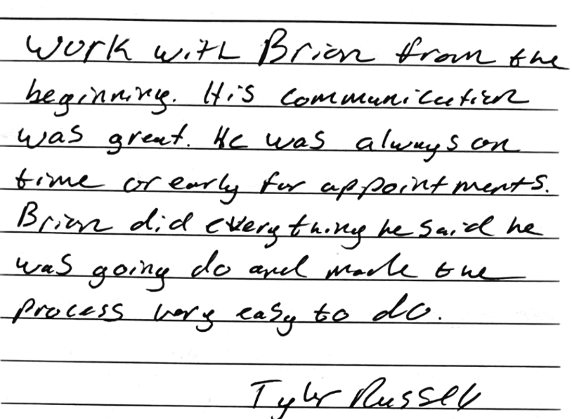 “I have closed on a number of deals with Brian and I look forward to more. I would recommend Brian’s services based on my experiences with him.”